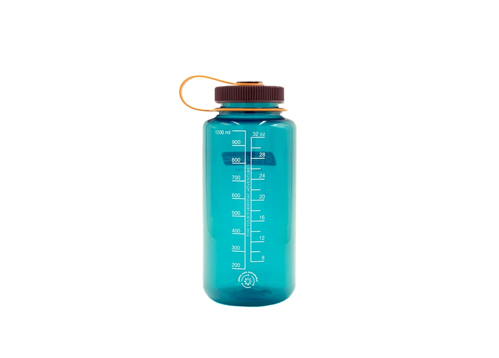 Our plastic water bottle Nalgene comes in a wide variety of colour options and is made of 50% RPET and 50% Tritan Renew, which is manufactured with recycled materials and is a more sustainable focused option. Our Nalgene water bottle comes in two sizes, 500ml/1L and two different options, one with a narrow mouth and one with a wide mouth.